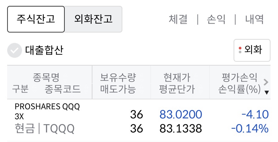 4. 잔고수량 : 36주